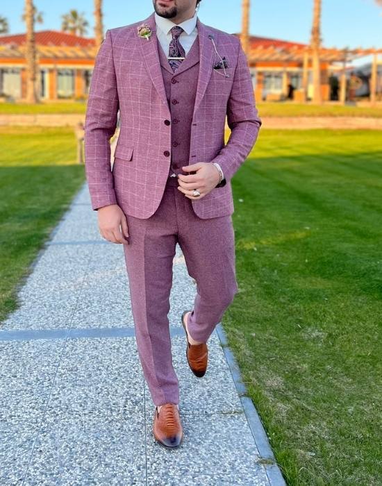 Classic 3-piece checked suit, ideal for weddings or as a stylish wedding outfit. Consists of a blazer, trousers, and waistcoat.