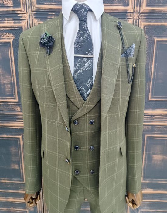 Costume classique 3 pièces à carreaux, idéal pour les mariages ou comme costume de mariage élégant. Composé d'une veste, d'un pantalon et d'un gilet.