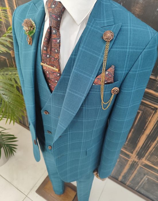 Costume classique 3 pièces à carreaux, idéal pour les mariages ou comme costume de mariage élégant. Composé d'une veste, d'un pantalon et d'un gilet.
