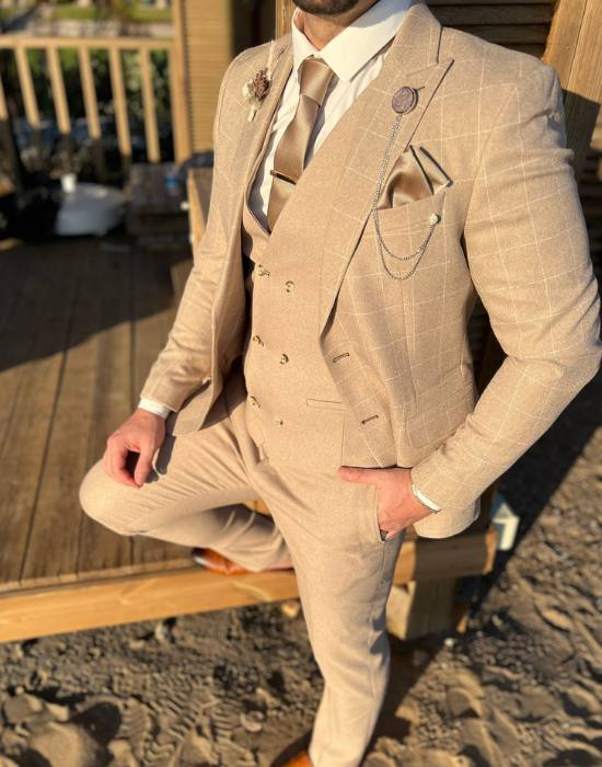 Ontdek de verfijning van ons **Savanne lichtbeige kostuum** – een meesterwerk dat elegantie en veelzijdigheid uitstraalt. Perfect voor elk seizoen, dit kostuum is uw ideale partner voor bruiloften, waar de subtiele tint moeiteloos opgaat in elk thema. Het ingetogen lichtbeige gecombineerd met een luxueus patroon zorgt ervoor dat u opvalt op elke speciale gelegenheid, of het nu een gala of een belangrijke zakelijke bijeenkomst betreft. Dit kostuum biedt niet alleen een slanke pasvorm, maar ook een feilloos ontwerp dat uw silhouet complimenteert. Combineer het met een fris wit overhemd en een stijlvolle das in complementaire aardetinten voor een klassieke look of voeg een kleurrijke pochet toe voor een vleugje persoonlijkheid. Met accessoires zoals lederen schoenen en een stijlvolle horloge, maakt u de look helemaal af. Bij Pomandi begrijpen we het belang van een perfecte pasvorm. Daarom nodigen we u uit in onze fysieke winkel voor een persoonlijke afspraak, waar uw kostuum op maat wordt gemaakt. Liever online shoppen? Ons platform biedt uitgebreide ondersteuning om ervoor te zorgen dat uw aankoop precies aan uw wensen voldoet. Kies voor Pomandi en ervaar de unieke kwaliteit en vakmanschap van onze kostuums – perfectie gegarandeerd.
